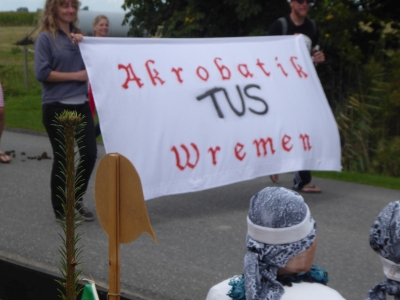 Direkt hinter dem Wagen des Festkomitees reihte sich die Akrobatik Gruppe des TuS Wremen ein, die die zahlreich am Wegesrand zuschauenden Besucher mit kleinen Akrobatikeinlagen unterhielten und dafür donnernden Applaus einheimsten.